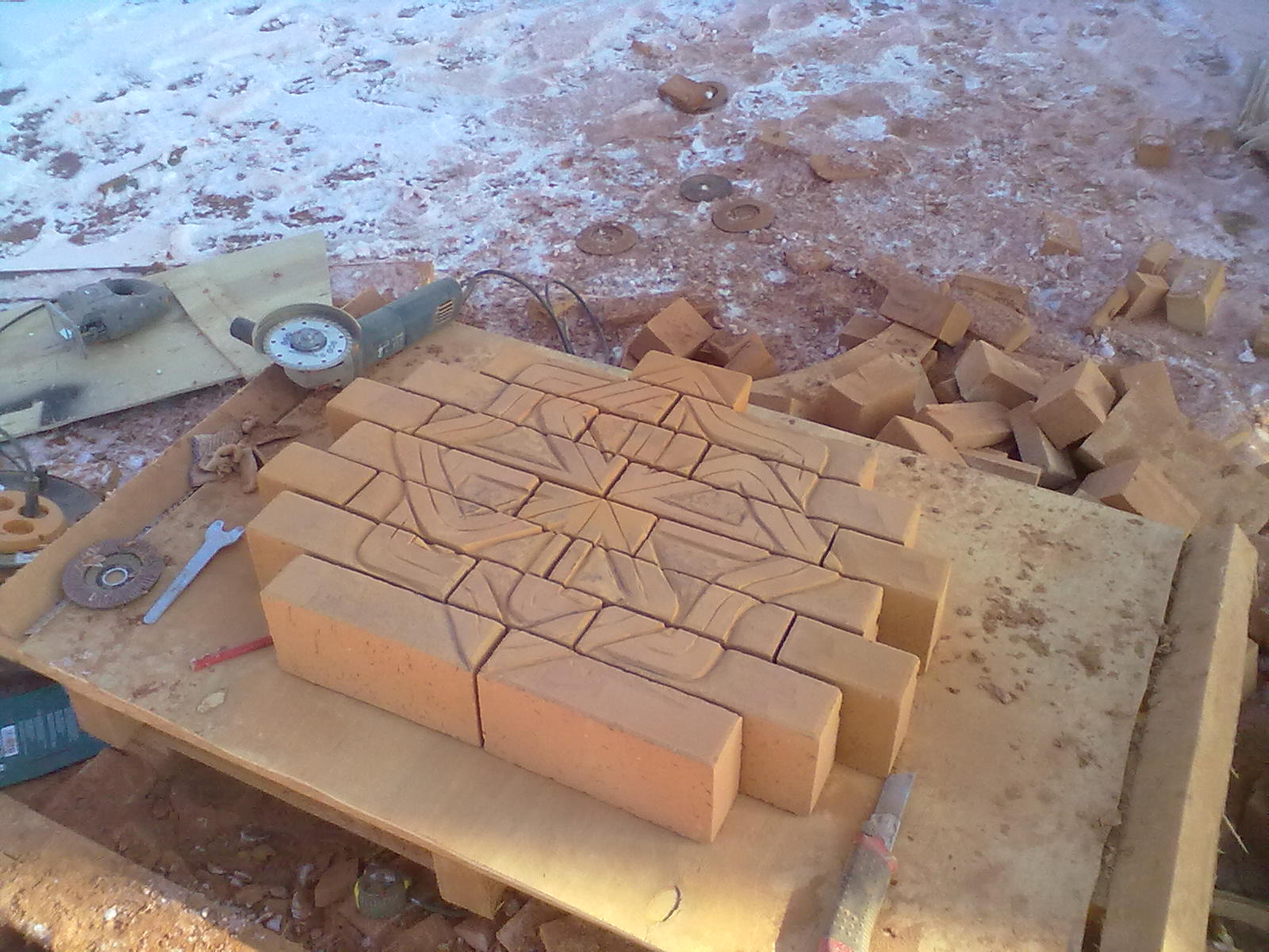 Теперь о том, что же Вас ждет если Вы решились сделать себе печь или другую печную конструкцию. Первоначальный этап выбор конструкции я думаю мы уже обсудили.Следующим этапом мы выбираем материал и фурнитуру,и производим расчет его колличества.Выбор в настоящее время очень богатый.И вопрос этот так же индивидуален.Отмечу лишь что подобрав материал,он приедет к нам сам, по списку.Дальше идет подготовка рабочих мест. Т.к. в ходе возведения очага идет очень много резки кирпича, его обработка.То первым делом возводится место для обработки кирпича,с возможностью предотвращения пыления на дом или элементы участка.Такое место позволяет не зависеть от погодных условий и работать непрерывно и в снег, и в дождь.Подготавливается фурнитура, место работы и вперед.В среднем работа над стандартной печью или камином доходит до одного месяца.Работа над комплексом разного назначения от 1500 до 3500 кирпичей от 1,5 до 2,5 месяцев.Поэтому намекну, что крупные многофункциональные комплексы или комплексы на 2 этажа,индивидуальные,штучные, с большим количеством резных элементов, лучше делать в спокойные зимние месяцы, когда есть время творить