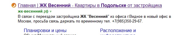 Где же наши "официальные представители застройщика" - ВСН ?Тропарь писал(а):мне пол часа назад дали другой ))) но тоже мобильный...chestoy-ili-ment писал(а):Вот номер ЖК Весенний, дали в арсе: 8-926-271-60-99 типа пока по нему связь, старые номера не актуальны.