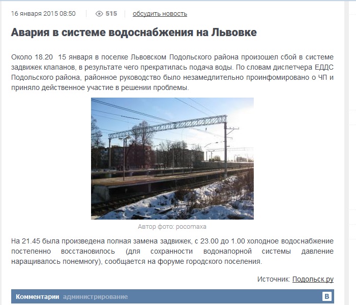 Поначалу он брал фото у нас, но в группе наши фото лежат уже без логотипа Подольск.ру. Потом развернулся, стал искать сам и люди ему стали присылать охотно.