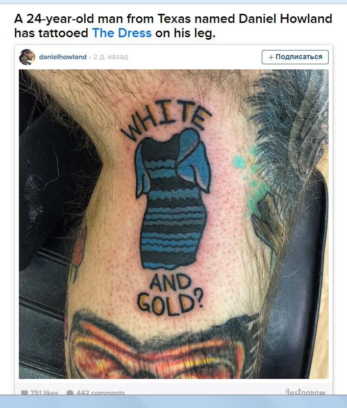 Суждения интернет-пользователей о платье породили даже собственный хэштег #TheDress. В итоге автору фото пришлось сознаться, что платье на самом деле синее с черным. То есть - опубликованное изображение обработали.