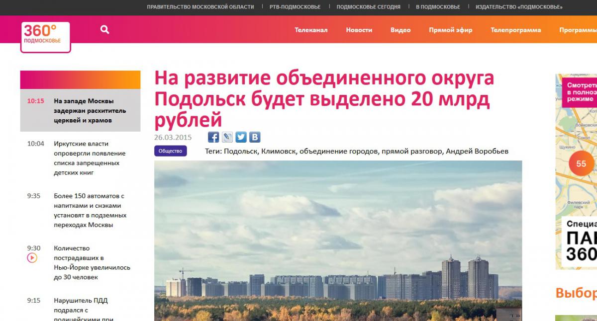 У региональных журналистов, по моему, правая рука не знает, что делает левая. Недавно был "Прямой эфир" с Воробьёвым. Вот отрывок из него, касающийся Подольска: