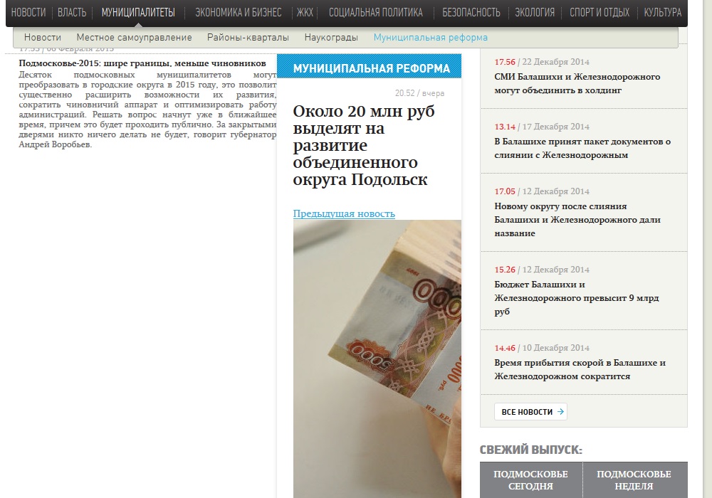 У региональных журналистов, по моему, правая рука не знает, что делает левая. Недавно был "Прямой эфир" с Воробьёвым. Вот отрывок из него, касающийся Подольска: