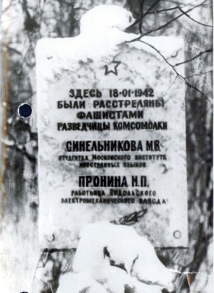 В последней разведке, после которой Маша бесследно пропала, она была вместе с Надеждой Ивановной Прониной, работницей Подольского машиностроительного завода. Девушки жили по соседству и дружили с малых лет. Отправлял их на задание майор Сокол, у него они и оставили свои настоящие документы. Обе получили новые имена. Маша Синельникова стала калужской жительницей Валентиной, а Надя Пронина – деревенской девчонкой Веркой. На людях обе выдавали себя за калужских тюремных «сидельцев».