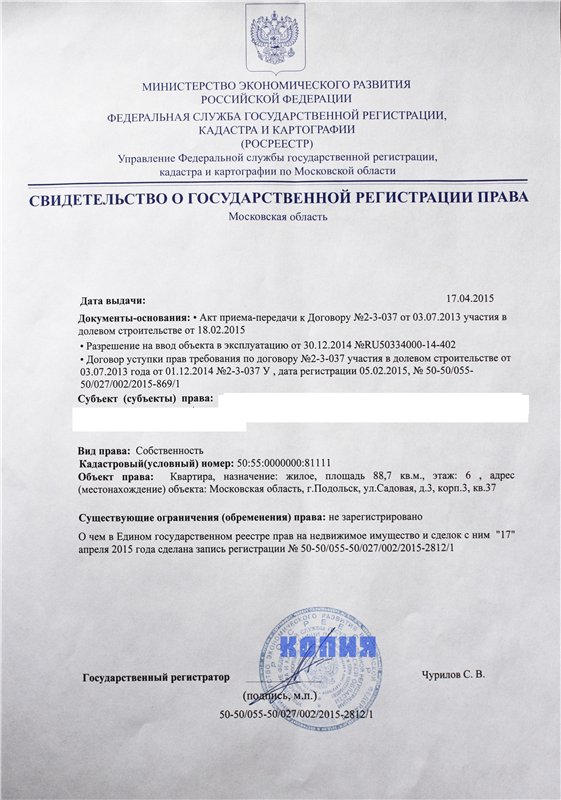 Зашел в запись по нашей квартире в Росреестре, там есть информация по метражу квартиры (уже увеличенному после обмеров БТИ, но без балкона), есть кадастровая цена более 1.7 млн. руб.