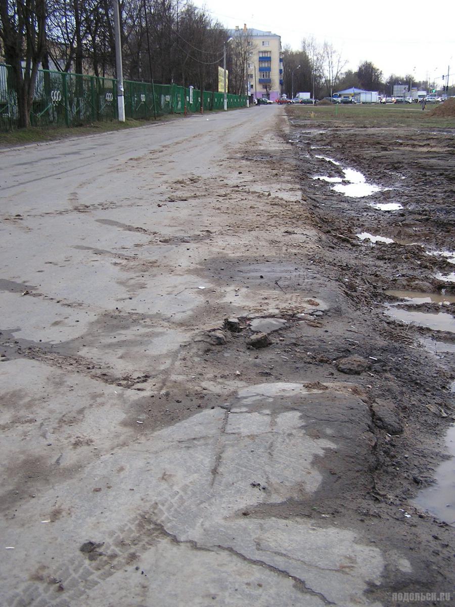 11 сентября 2014 г. у стадиона "Весна" в Климовске уложили асфальт. На участок в 1157 квадратных метров было потрачено 1.417.000 рублей. При этом асфальт клался на старые бордюры, а новые не были установлены, а это означает, что при дожде земля выносится на дорогу. Никто не учел и более серьезного обстоятельства: напротив стадиона в рамках строительства "Южного обхода Подольска" ведется монтаж электроподстанции и тяжелые грузовики передвигаются по проезду. Новенький асфальт уже к вечеру дня укладки из черного превратился в коричневый от глины с колес, а в местах съезда разломился.