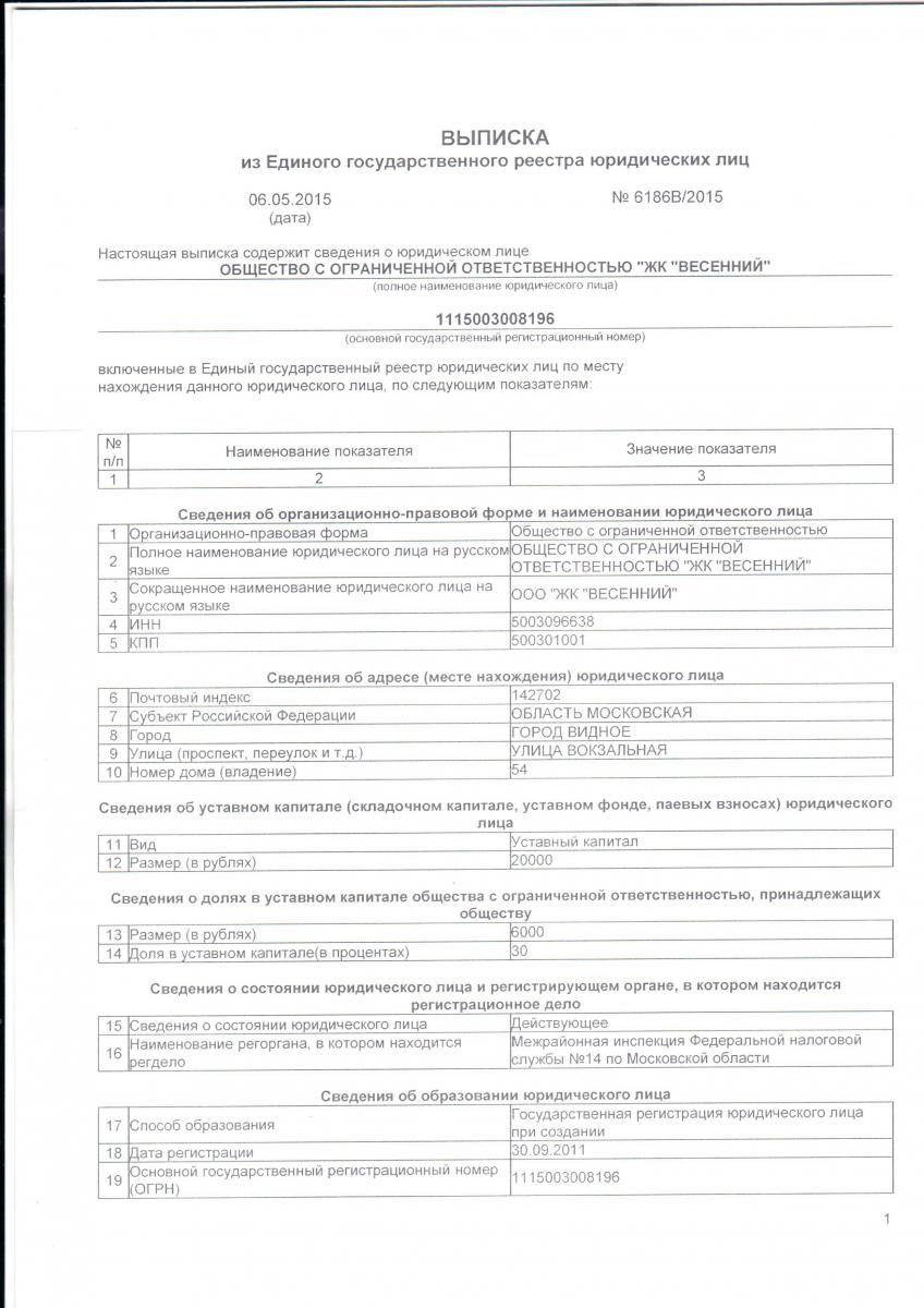 Предоставляем выписку из ЕГРЮЛ, позволяющую воочию увидеть актуальные данные.
