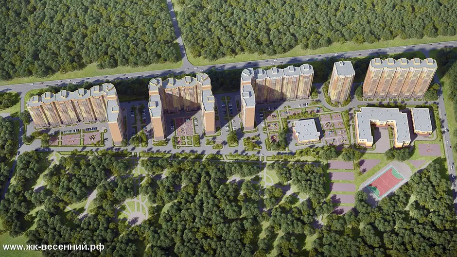 - территория действительно уменьшилась, это повлекло изменение проекта. Прилагаю рендер (картинку) актуального проекта Весенний. С большой долей вероятности все именно так и будет в итоге: