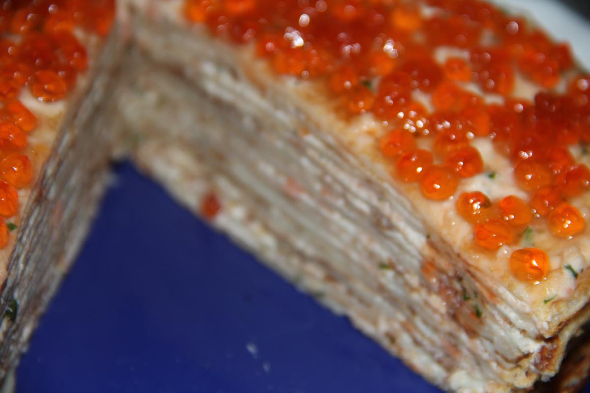 Сначала мне очень понравилась в Глобусе маленькая ,чугунная сковородка )) Сегодня ночью готовились к банкету , напекла на ней блинов . И вот такие три тортика получились . В одном начинка - фарш мясной + капуста тушёная ,слоями . Во втором лук зелёный со сметаной и яйцом -один слой , лук пассерованый с грибами -второй слой . В третьем ,творожный сыр,сёмга,икра .))) Вкусные ,оооочень все , мне больше всего понравился с капустой и мясом , но класть можно любую,абсолютно любую начинку из того ,что под рукой .