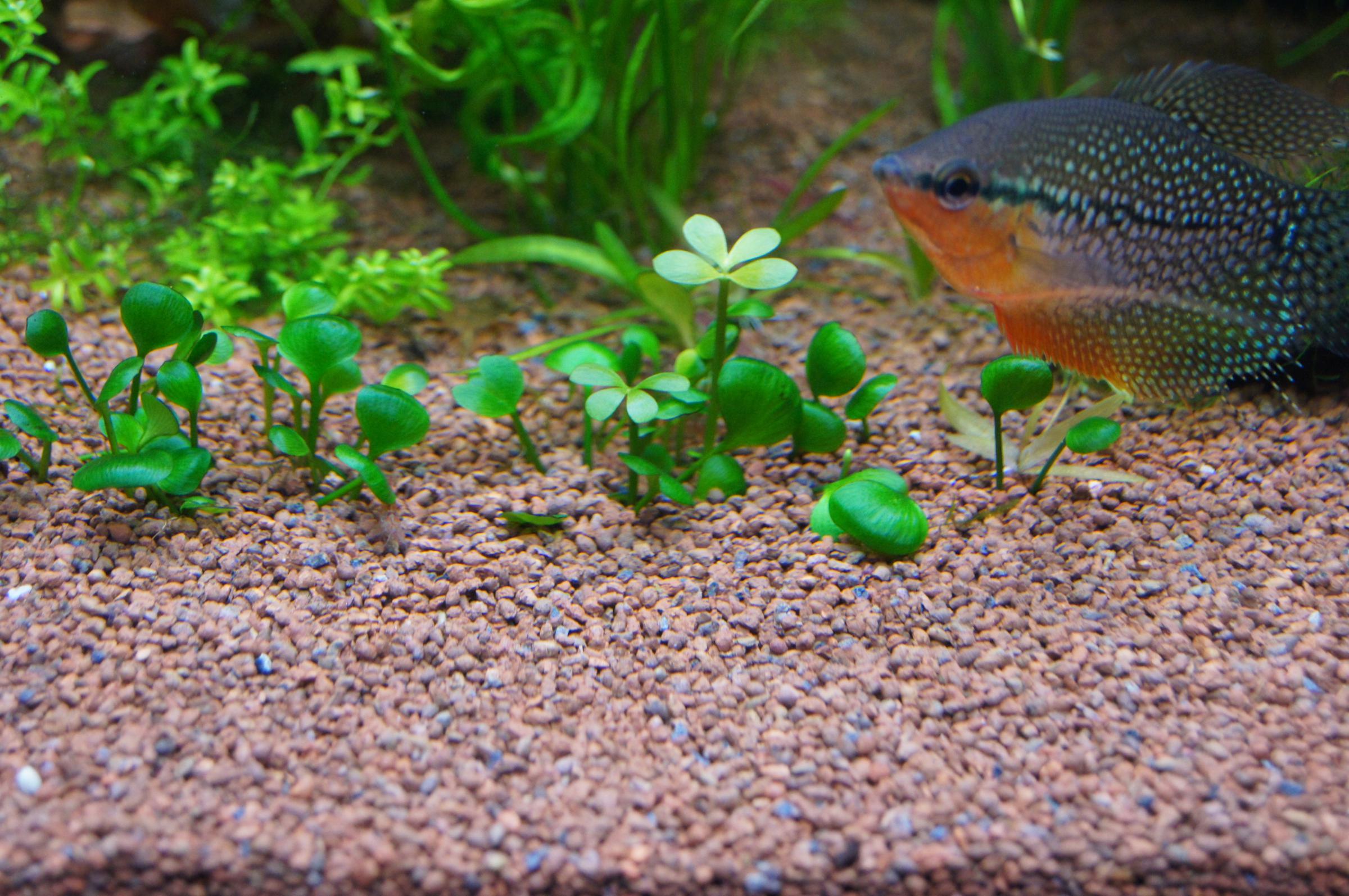 Травка всякая у меня есть, с хорошими корнями криптокорины. Грунт не закисает, с этим проблем нет. Мне грунт не нравится потому, что во-первых, крупновата фракция (разброс 4-9 мм), во-вторых, хоть и слабую реакцию, но в уксусе дает, ну и внешне не нравится.