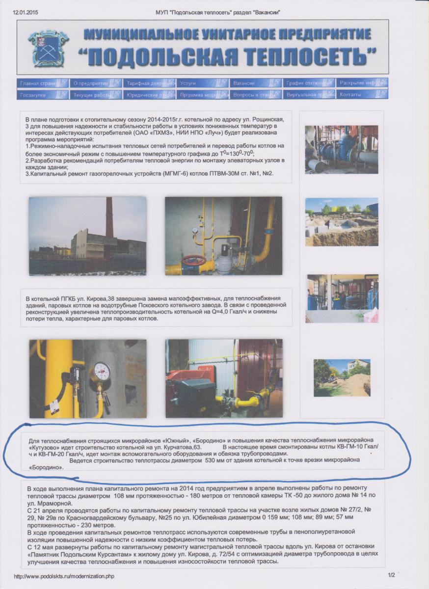 Котельную начали достраивать и доводить до "ума" с лета 2012года,и в конце 2014 доделали,( с монтажом оборудования под наши ЖК), а сама коробка котельной стоит ( на выделенной под неё территорией где-то с конца 90-х,раньше банально у города не было средств достроить, а сейчас нашлись инвесторы). А инфа по поводу газа, из моей переписки по электронке с МУП" Подольская теплосеть" и переписки с нашей УК. Обе конторы отписались что всё ОК будет в августе этого года...viktor99 писал(а):Откуда информация, что подведут газ именно в августе. Эту котельную на Курчатова 63 уже долго строят, 5 лет точно, все никак не построят.торопыга61 писал(а): К августу подведут магистральный газ,и будет нам всем тепло в новом отопительном сезоне...