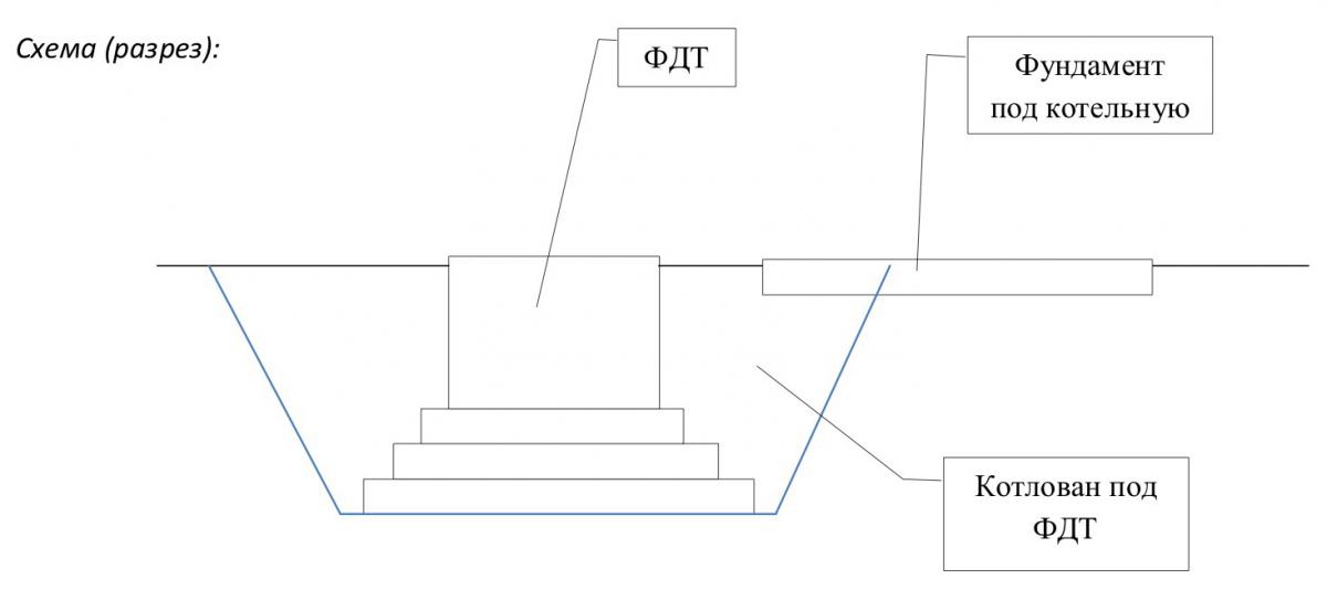 Прилагаю схему. Фундамент под котельную делается рядом, отдельно. Далее ее перевозят и устанавливают по месту. Как и писали ранее, сначала запустят по временной схеме на сжиженном газе. Параллельно доделывают трубу и подключают к центральной магистрали. К отпопительному сезону (осенью) - подключаем по постоянной схеме.