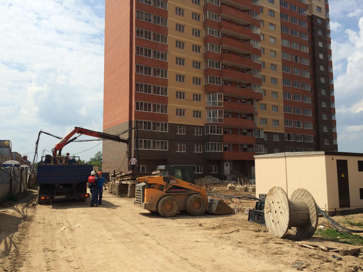 По благоустройству: сделан дополнительный съезд в районе корпуса 1, производится очистка и вывоз мусора между корпусами 1-2 и во дворе корпуса 2, идет геодезическая разбивка под благоустройство. Площадку чистят и готовят.Aviator писал(а):Говорили, вроде, что теплотрасса у самих домов готова. Осталось только по другим участкам до котельной дотянуть и соединить.