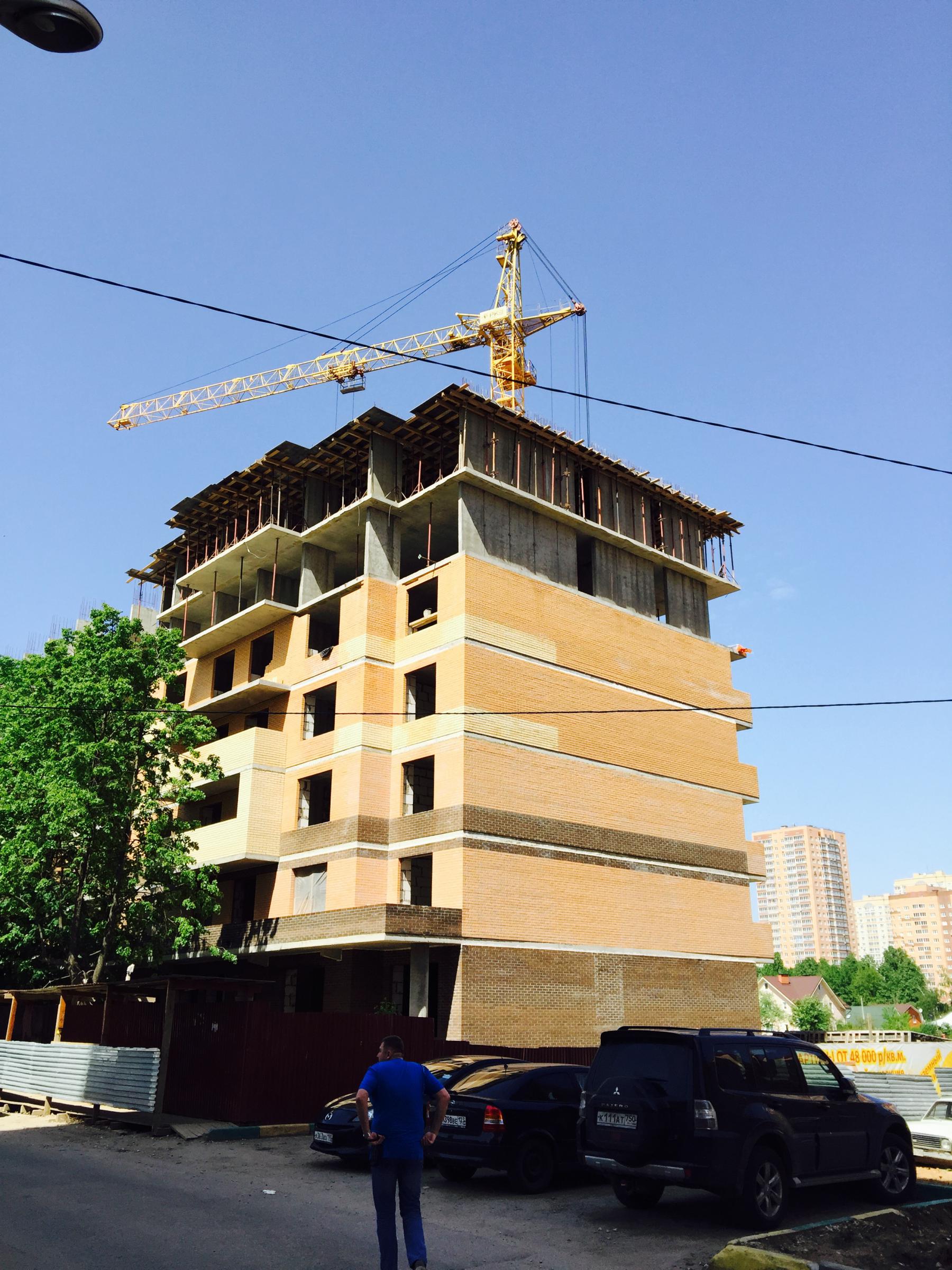 Проезжал сегодня мимо, и заехал специально посмотреть на эту новостройку. Работа идет, даже кран крутится, но по-прежнему лишь отделка уже отлитого. Скорее всего внутри работают, т.к. шел дождь. Каркас по-прежнему застыл на уровне 6,5 этажа. Сейчас отделывают кирпичом 5й этаж. Скоро "упрутся" в отсутствие работы, т.к. надо дальше наращивать каркас.