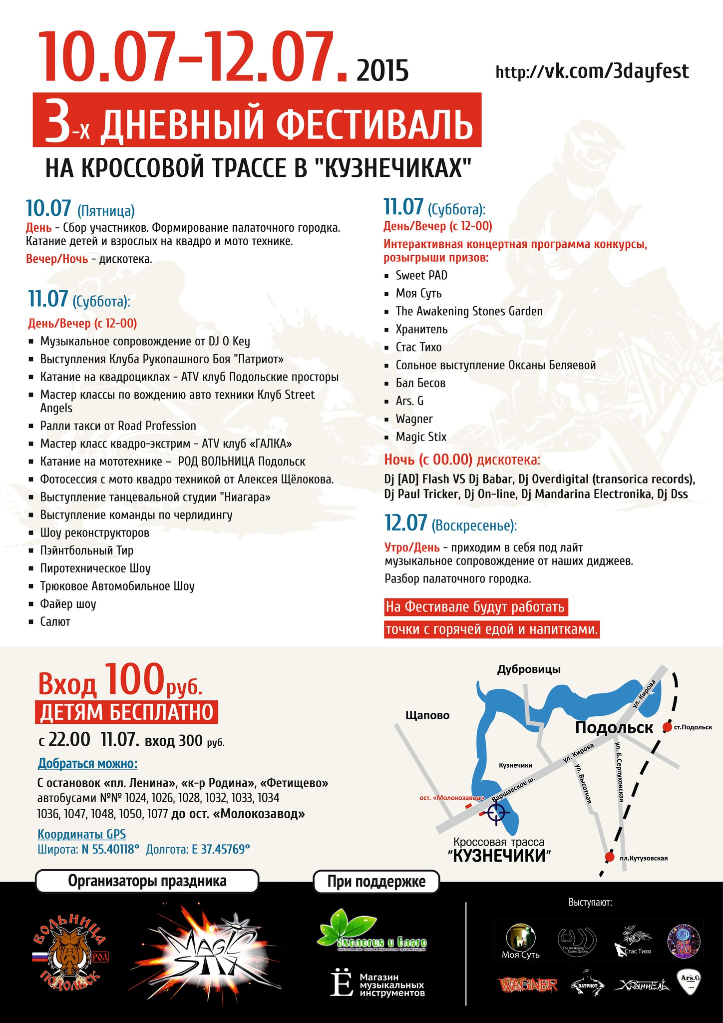 Трехдневный фестиваль на кроссовой трассе в Кузнечиках 10-12 июля.