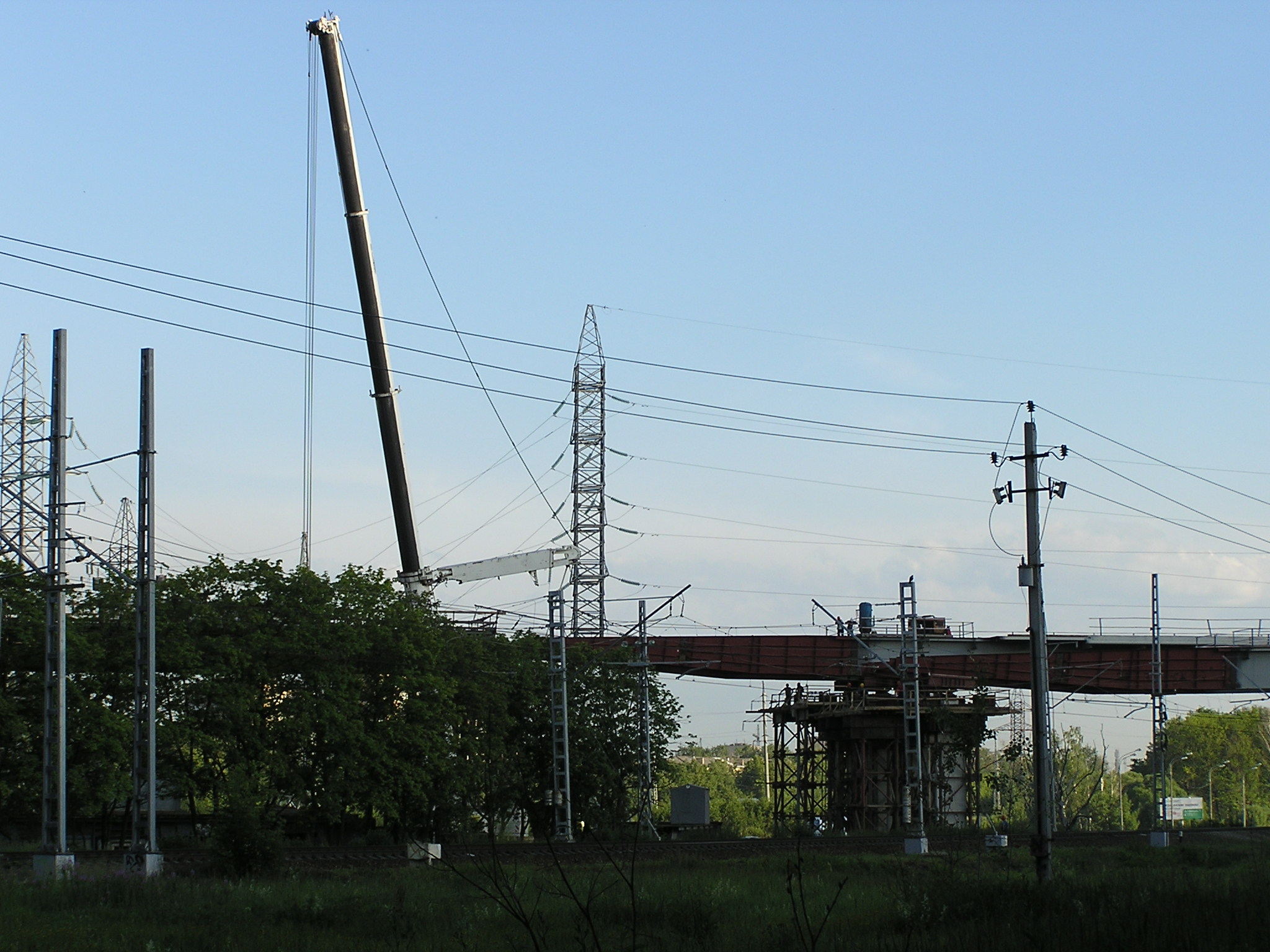 Солдатики на эстакаде. Клепки в "много-много дырочек" на стыках забиваются вручную.