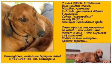 СРОЧНО! !!!!!! 18.05.2015 на Варшавском шоссе поворот на знамя октября был найден кобель черно-подпалой таксы, всех, кто что то знает о его хозяевах просьба связаться со мной по телефону 89266468587 спасибо!!! Если нужно фото пишите в вибер или смс !!!!!