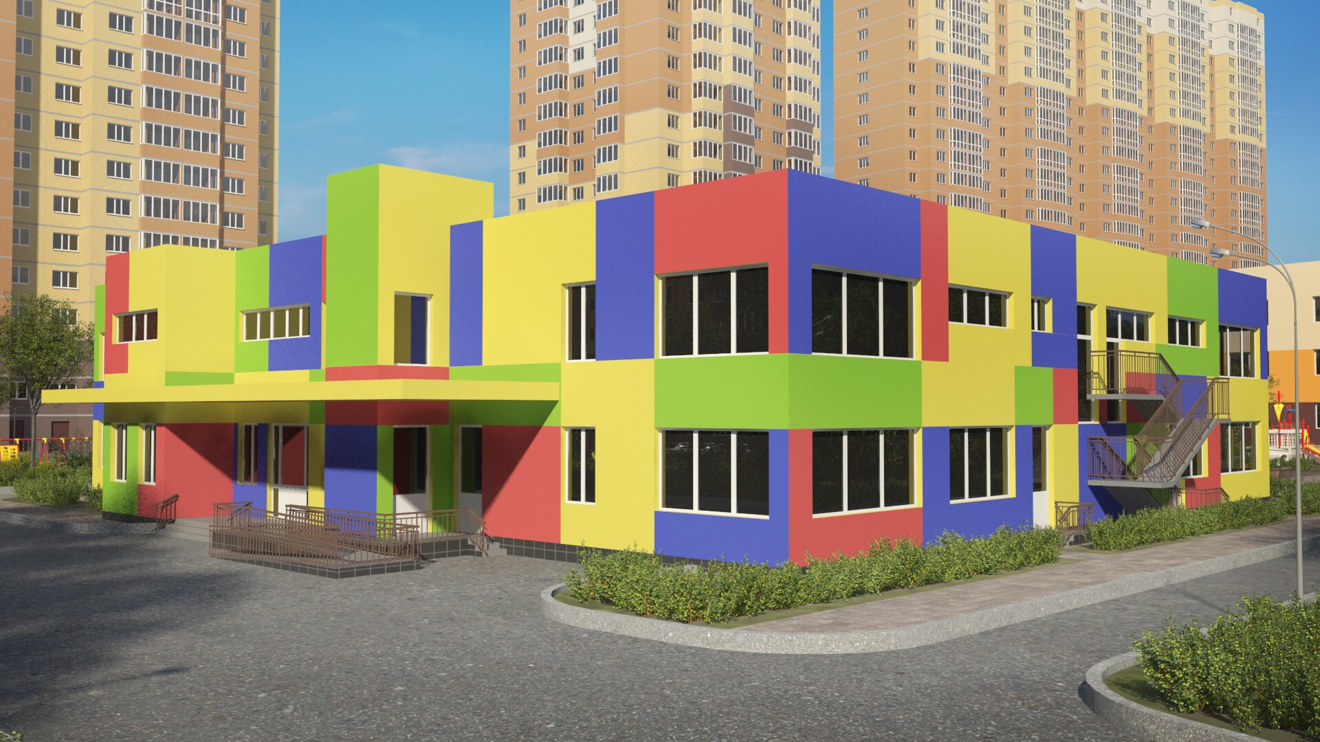 По садику, под изначальным названием "Мозаика"... Фасад будет полностью переделан. Новый проект практически готов. Могу представить визуализацию.