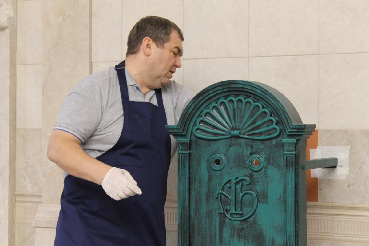 Для придания более исторического вида колонки покрыли специальным составом, создающим эффект патинирования, то есть естественного старения поверхности металлов за счет образования поверхностной пленки, аналогично бронзовым памятникам.