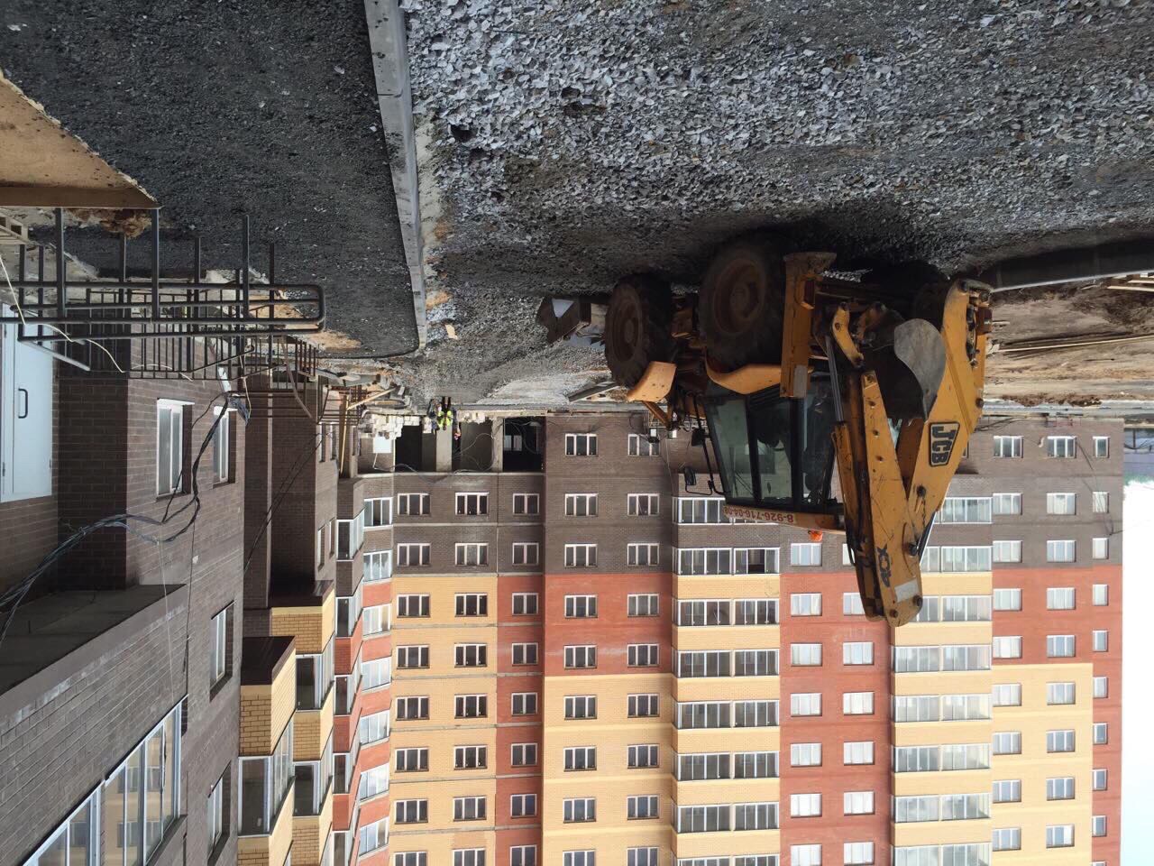 На 3 корпусе кран работает. Монолитчики зачем-то кучей сбежались вниз, постояли у склада с арматурой, почесали голову, и опять кинулись на верха корпуса.