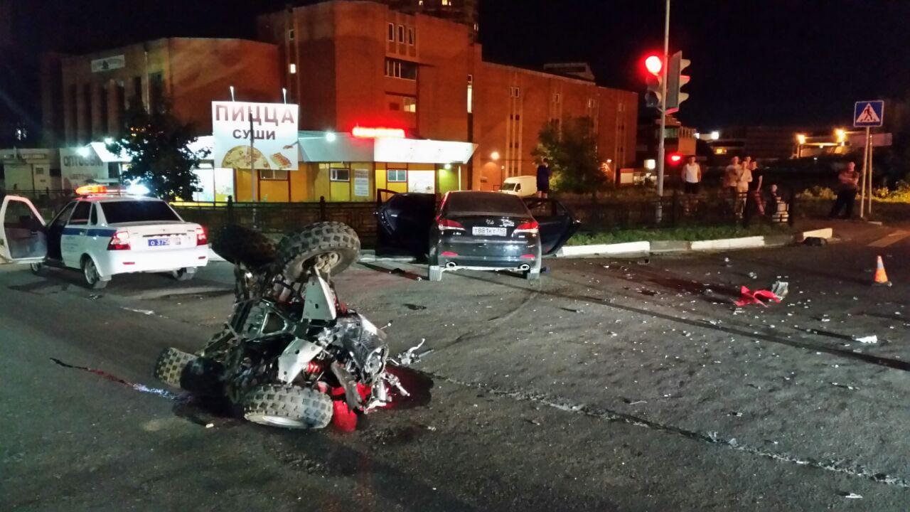 10 августа в 00-50 в Подольске на улице Кирова у дома 19 водитель, управляя квадроциклом "Хонда", проехал на запрещающий сигнал светофора, в результате чего столкнулся с а/м "Хендэ VF I40", который совершал поворот на перекрестке налево на разрешающий сигнал светофора, со встречного направления по отношению к квадроциклу. Погибли водитель и пассажир (находились в мотошлемах, без мотоэкипировки).