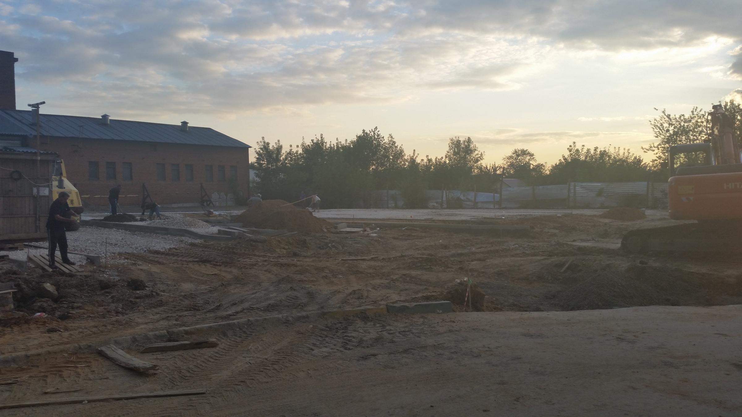 Сегодня вечером были около дома. В девятом часу всё ещё ездил трактор, ровнял щебень позади дома. Приятно, что в поздний час в выходной день ведутся работы. Начали делать ступени вход в подъезды. Красота одним словом :-)