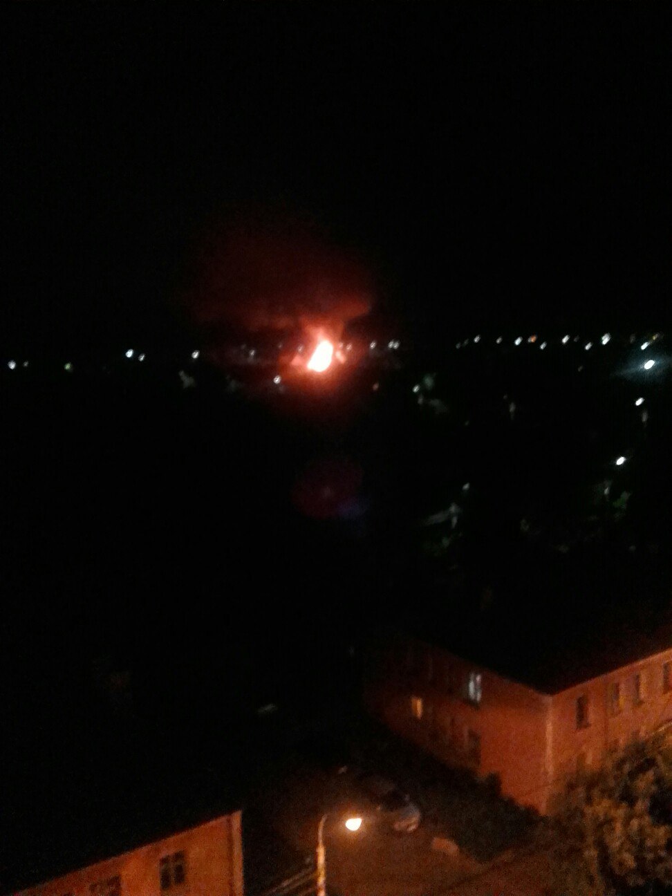 Насколько смогла разобрать в бинокль - жилой дом, пламя в 2-х окнах полыхает