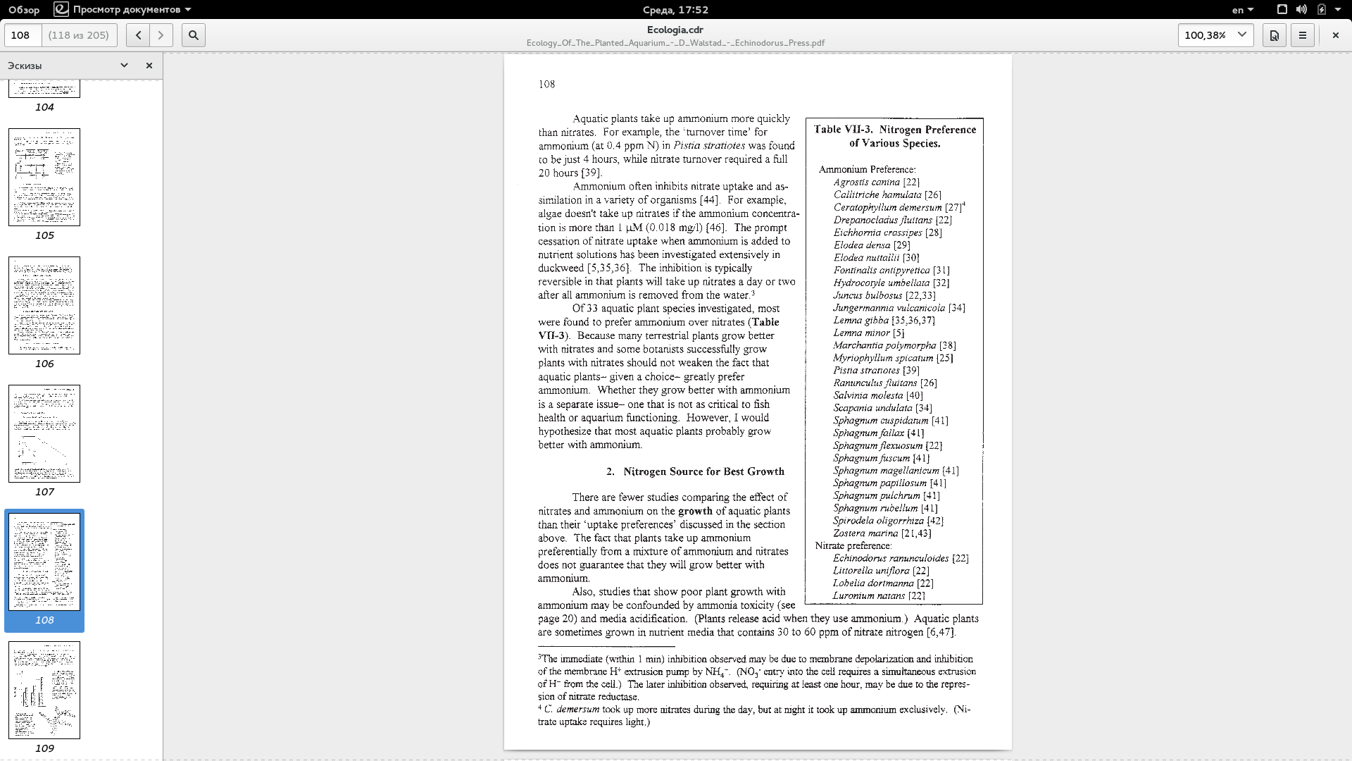 Да вот Вам и противоречие. Всего одно Ваше предложение его и содержит. Трава предпочитает потреблять сначала аммиак/аммоний, затем нитрит, а уже после всего этого, или когда это все уже кончилось, - нитрат. Так растениям энергетически выгоднее. Это не моя точка зрения, потому что я ни разу в жизни не измерял аммиак/аммоний и нитрит в своей воде. У меня в кране их нет, а в аквариумах у меня слишком мало рыбы, чтобы я с этими тестами заморачивался. Да и осмос у меня. А нитраты я в виде калийной селитры лью. Это - точка зрения Дианы Вальштад в ее книге "The Ecology of Planted Aquarium" о том, что растения составляют конкуренцию бактериям-нитрификаторам по потреблению разных форм азота. Вкратце, концентрация нитратов в воде никогда в жизни не дойдет до критической, если аммиак/аммоний и нитриты схомячат живые растения. Но тогда и нитратов не будет. Не из чего бактериям их будет создавать. Азотный цикл, на который Вы сослались, и потребление соединений азота растениями, про которое говорю я, идут параллельно, если у растений есть все условия для их потребления. Могу подтвердить это цитатой из ее книги, правда на английском языке, если хотите. Вы с ней тоже не согласны?
