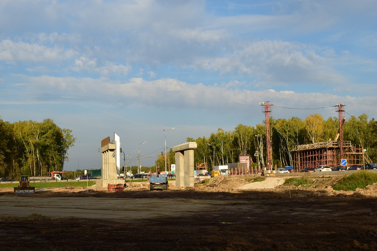 Эти опоры ближе к Подольску с обеих сторон дороги - скорее всего будущий надземный переход, в проекте он есть.