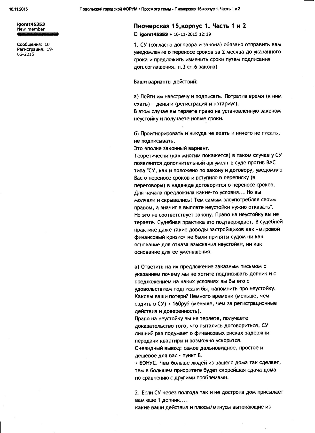 Смотрел сейчас наш ПГФ, у дольщиков с Пионерской 15,такая же ситуация с доп. соглашением. У них тоже стоит вопрос подписывать не подписывать. Огромное спасибо пользователю igorst453553. Он нашёл хороший алгоритм действий по доп. соглашению. Небольшое пояснение к тексту: СУ- имеется ввиду наверное какое то строительное управление...