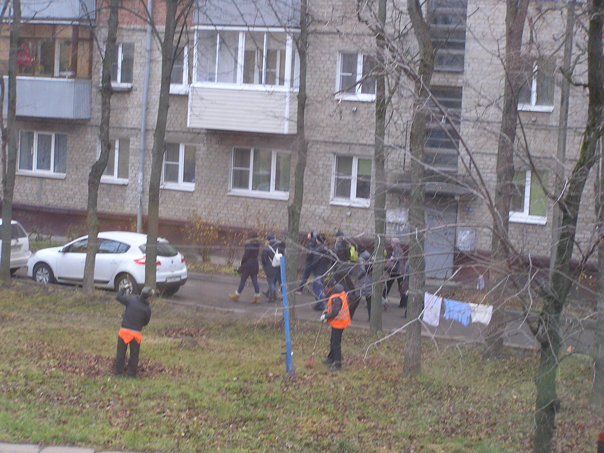 9 утра субботы... Азиаты догребают останки природы. Русские начальники приказали. Больше нет занятия для дворников!