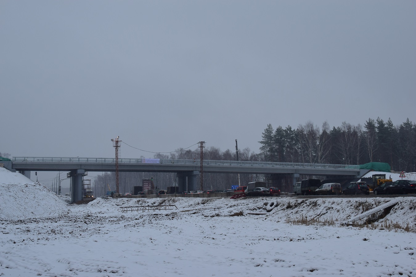 Вот разгонная полоса и будет от эстакады до поворота в область.Ну не спроста ж заправку снесли. Текущие нормы строительства не позволяют делать развязки без длинных разгонных полос
