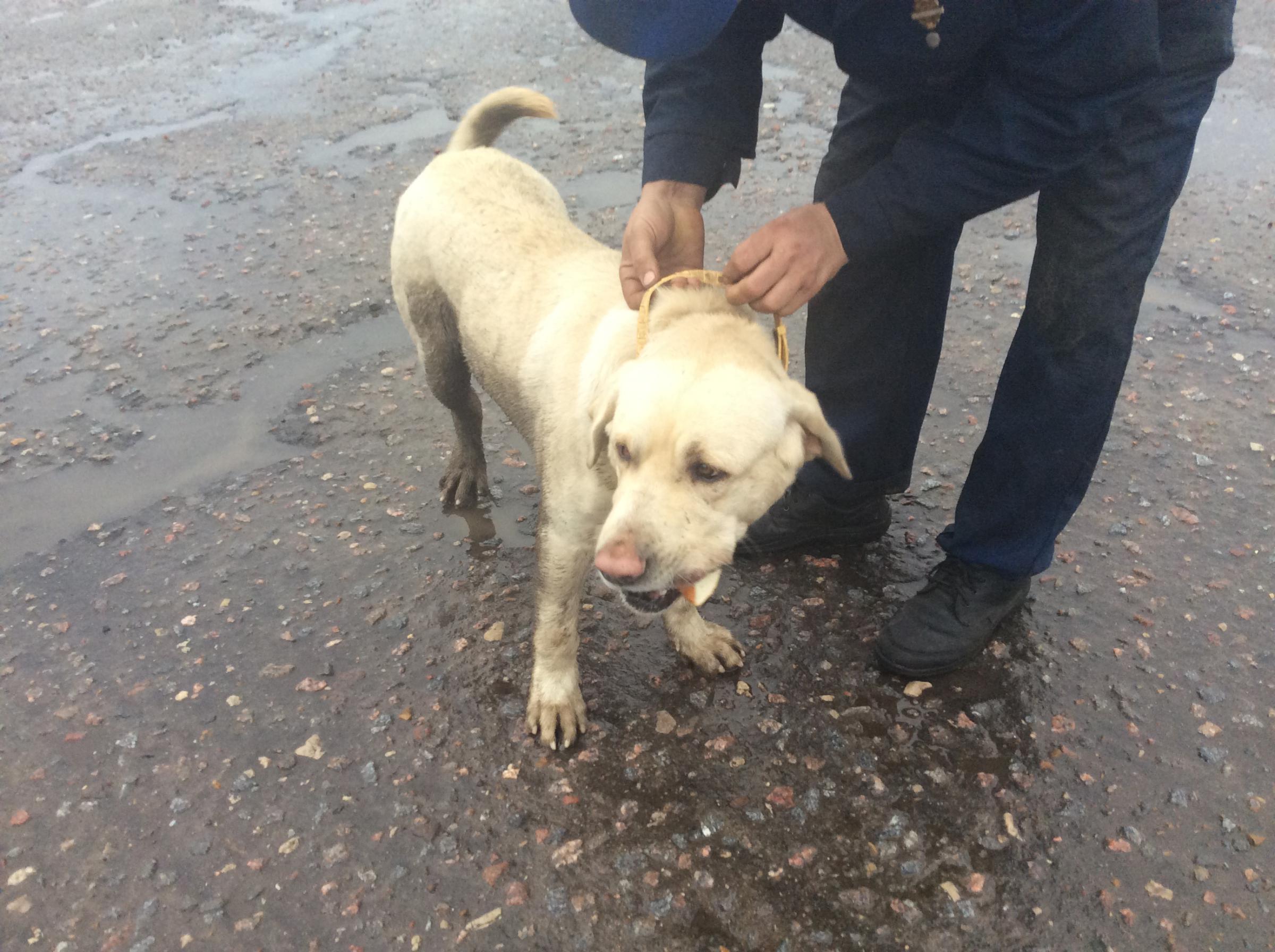 Найдена собака 05.12.15! В районе автоколонны 1127. Порода Лабрадор (мальчик) на собаке одет ошейник от блох. Хозяина просим обратиться к сторожу автоколонны.