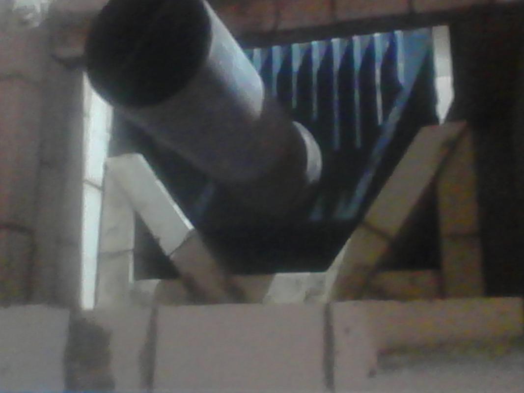 Теперь к камину под отделку.Особенности были следующие.Во первых это взаимодействие с "керамистами",оставление "клямеров" под вязку сетки,подбор состава числа,т.к. размер плитки не кратен кирпичу.Ну и как обычно перед проектом уточнение точного места прохождения трубы.В данном случае была заложена "гильза" в стене,но не там где надо.Пришлось вести новую трубу,уже через бетонные перекрытие.