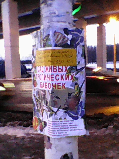 Выставка тропических бабочек, мед в "Гран-Сити", выставка кошек - всё это висит сегодня на столбах в Климовске.