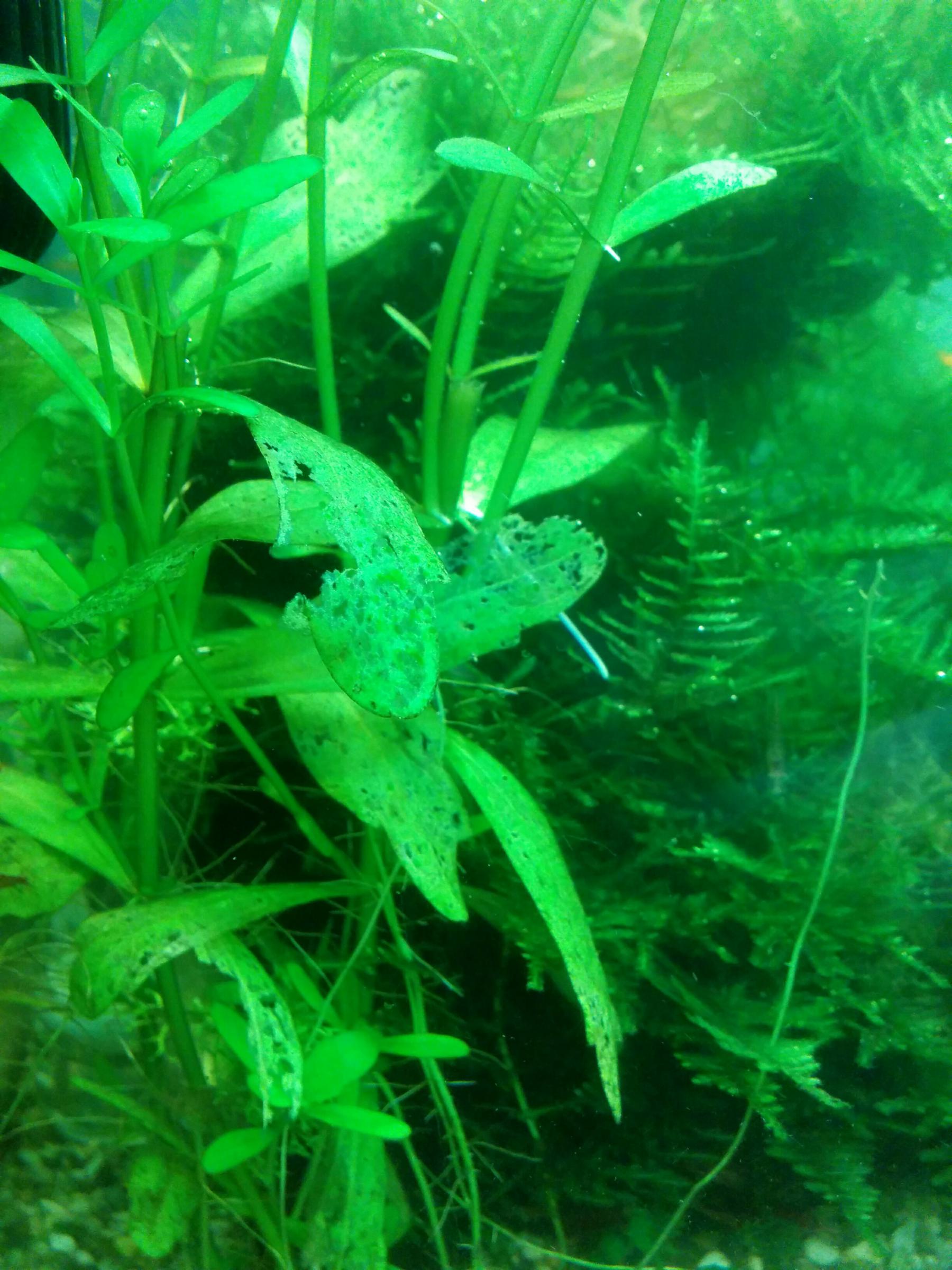 Акролюксы это фигня. У тебя нехватка калия. Листья у гигрофилы в лоскуты. Гигрофилы очень уж чувтвительны к макро,калию и марганцу.