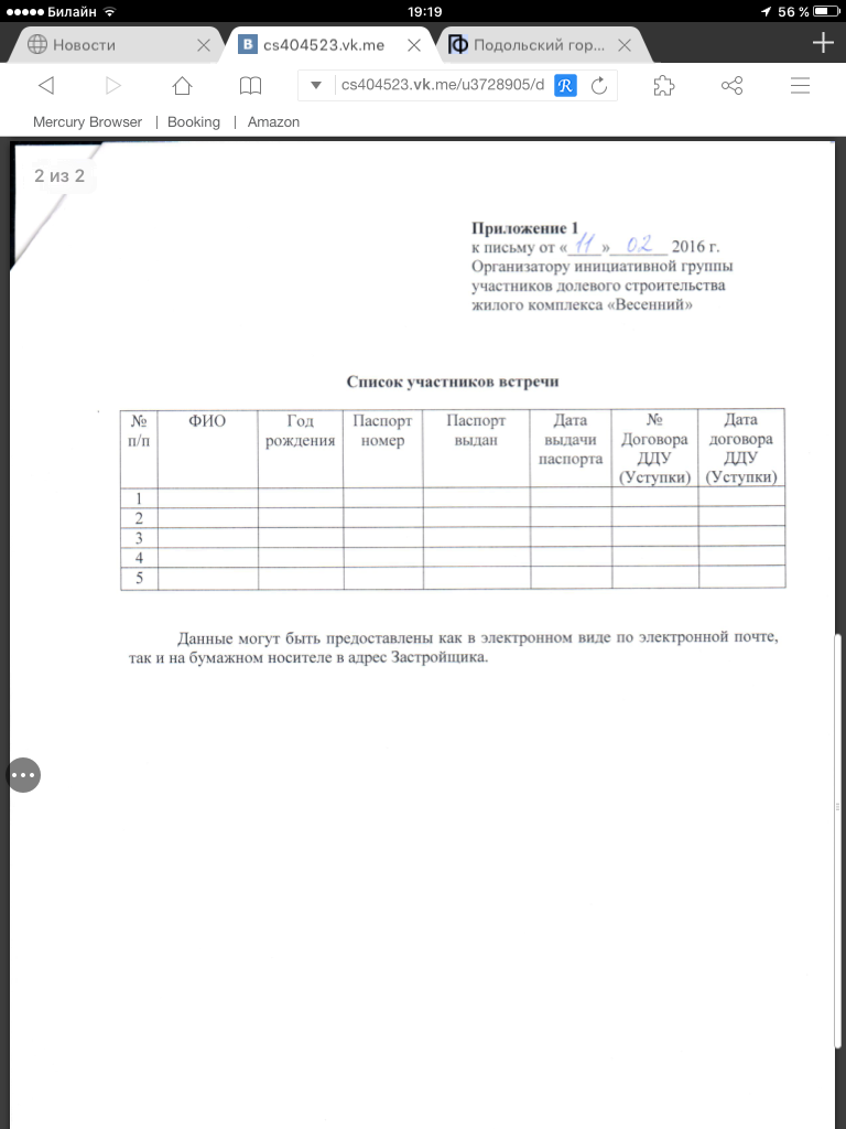 Здравствуйте. Готова прийти на собрание.Legion_o писал(а):Получен ответ от застройщика на проведение официальной встречи.