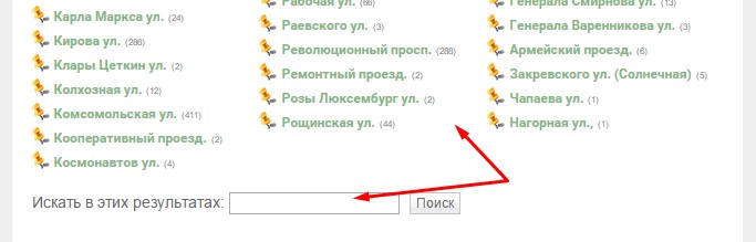 + вкладка синяя "разделы каталога" выбрал улицу и отсортировал по разделам если на выводе много фирм