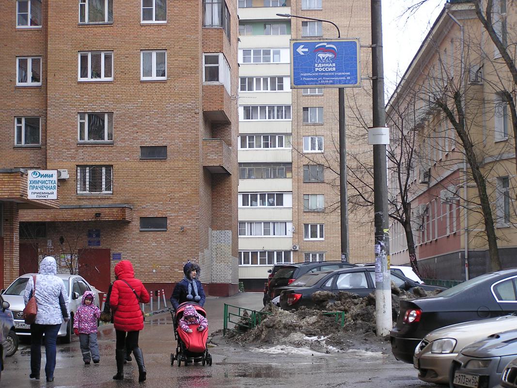 А подольское отделение "Единой России" совершенно равнодушно относится к этой проблеме. Приемная на Комсомольской, 46 это ярко демонстрирует - двор утопает в рекламе.