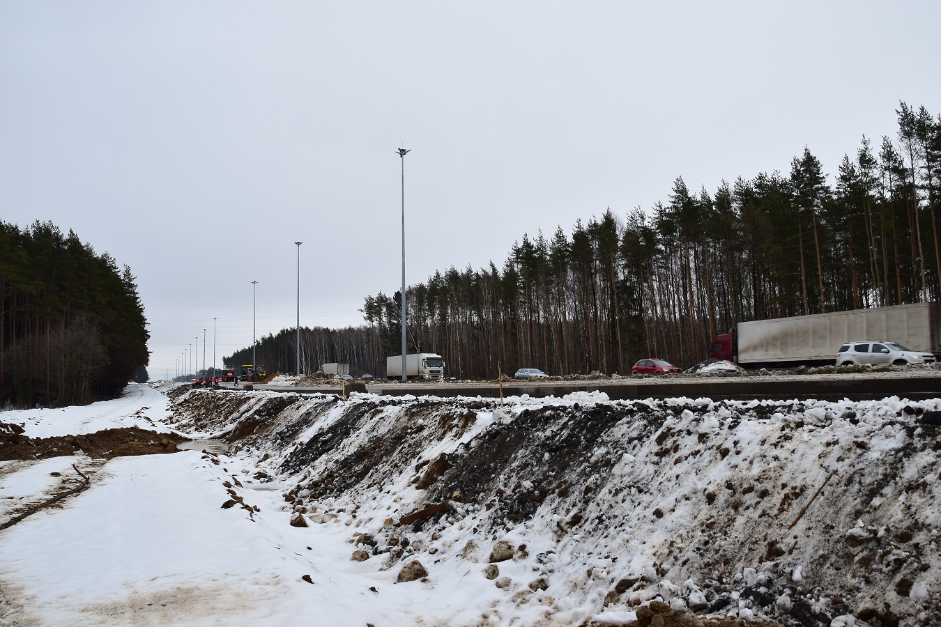 Увидел, что вся дорога до эстакады готова, везде отбойники, расширений для съезда нет, значит в Гривно можно будет попасть только через разворот после эстакады?