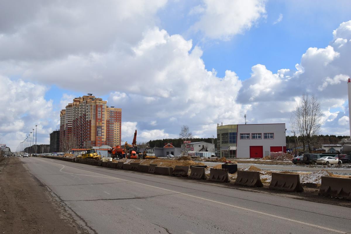 Ранее утро...Участок от эстакады до тоннеля,ставят бордюрный камень и делают подушку под тротуар. А вот будет ли съезд на Сосновую ул.? Возможно обрезали первоначальный вариант, как и переход на ул. Циолковского...