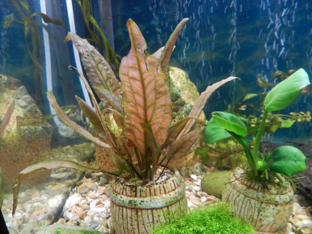 Растет анубиас... Не разрастается, и не чахнет... Больше в стволы идет, чем в листья... Он у меня вокруг коряги...