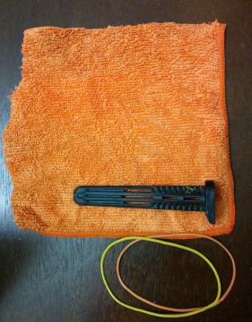 3.Наматываем на насадку фильтра, закрепляем (использую обычные резинки канцелярские)