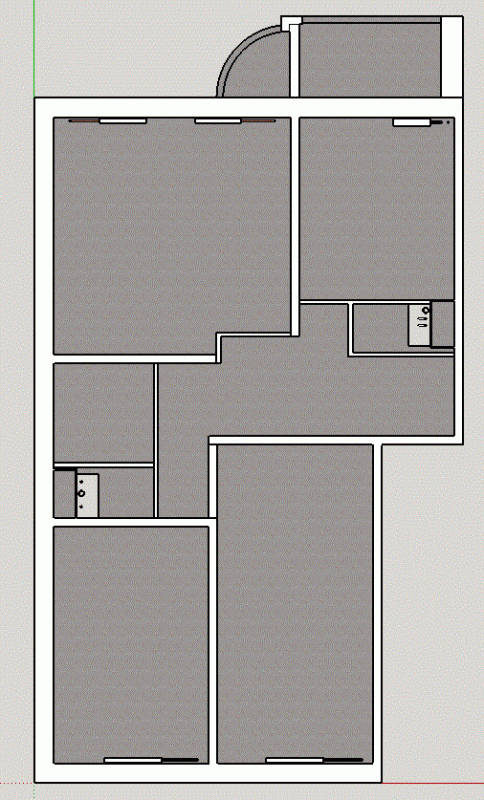 По сравнению с предыдущей версией добавил стояки ХВС/ГВС, канализации и радиаторы отопления. К сожалению, забыл снять расположение кранов, выводов под полотенцесушитель и колена на горячем стояке в туалете. Примерно, ориентироваться можно по фото: