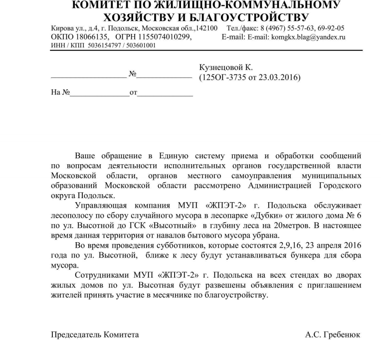 Из сообщения в сегодняшней официальной газете "Подольский рабочий", кажется, решение, которое будет предложено в ответе после проверки, уже принято в кабинетах.