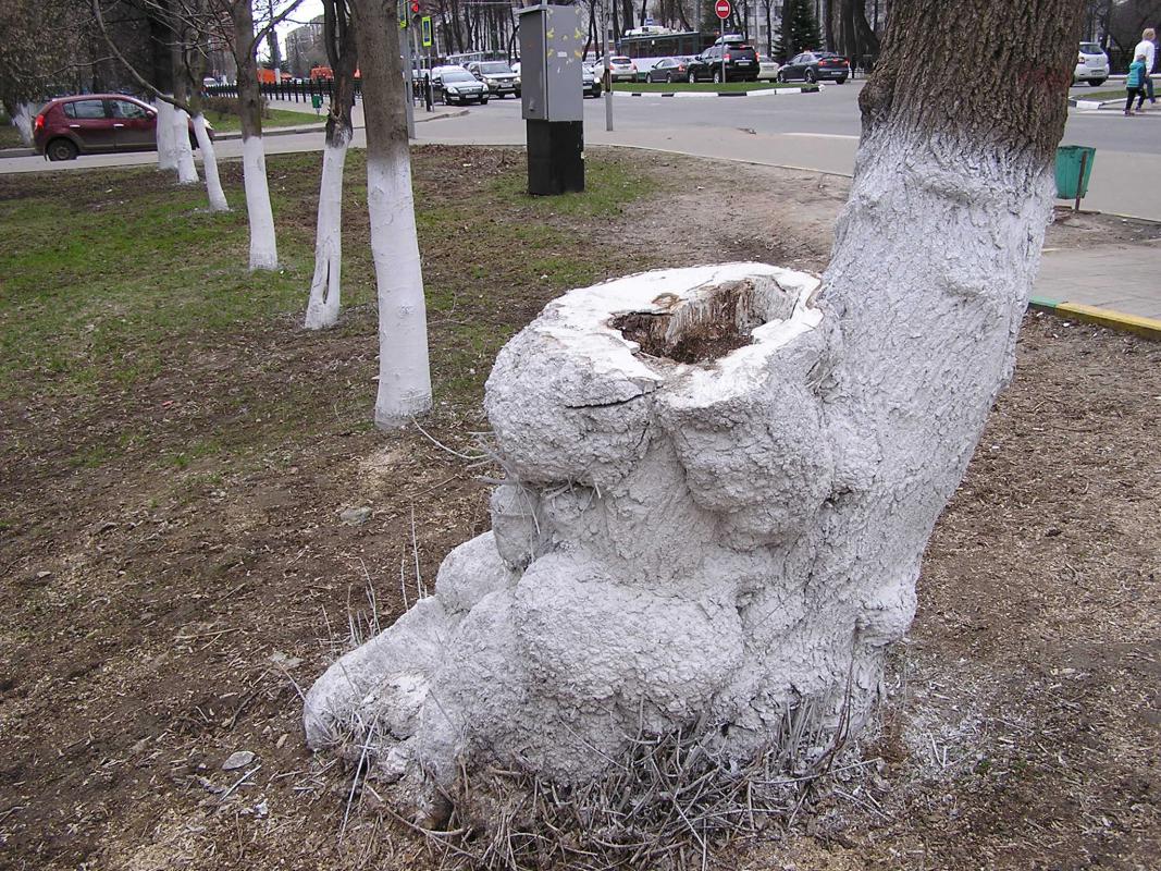— побелка стволов деревьев противоречит правилам ландшафтного и садово–паркового искусства, придавая городским ландшафтам не свойственный им казарменный или сельский вид...