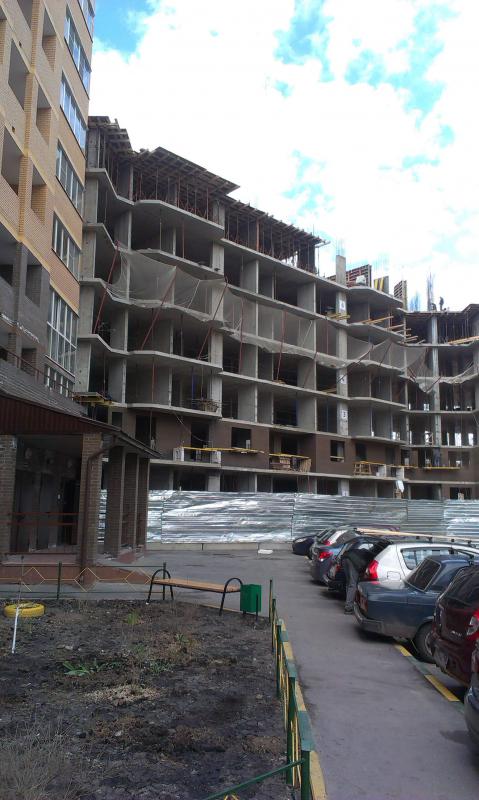 Сегодня заливают шестую секцию, шестой этаж. Четвёртый этаж заливали 17 Марта. На два этажа ушло чуть больше месяца. К сожалению, фото не очень удалось. Прошу не судить строго ;)