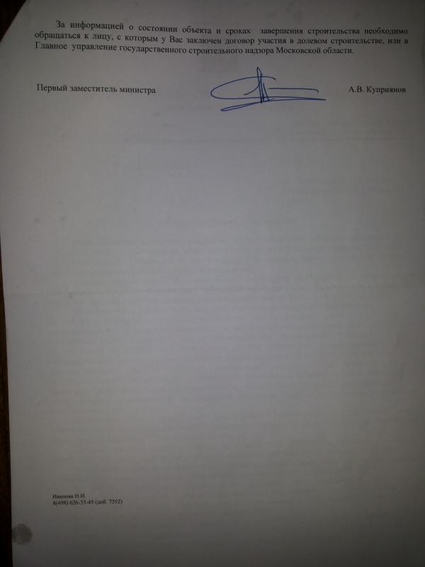 Получил ответ на свое обращение в Министерство строительства московской области.