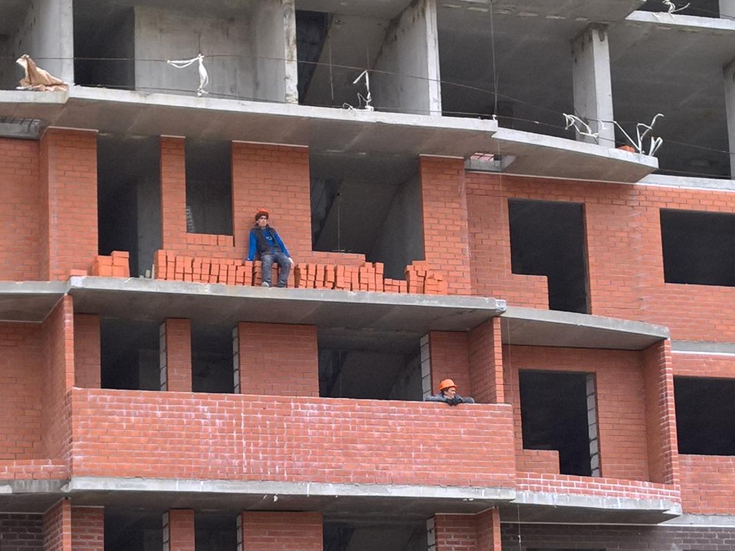 Эта неделя началась гораздо позитивнее, утром насчитал человек 15, все стараются кладут кирпич, внутри разгружается фура с блоками, фотки ниже