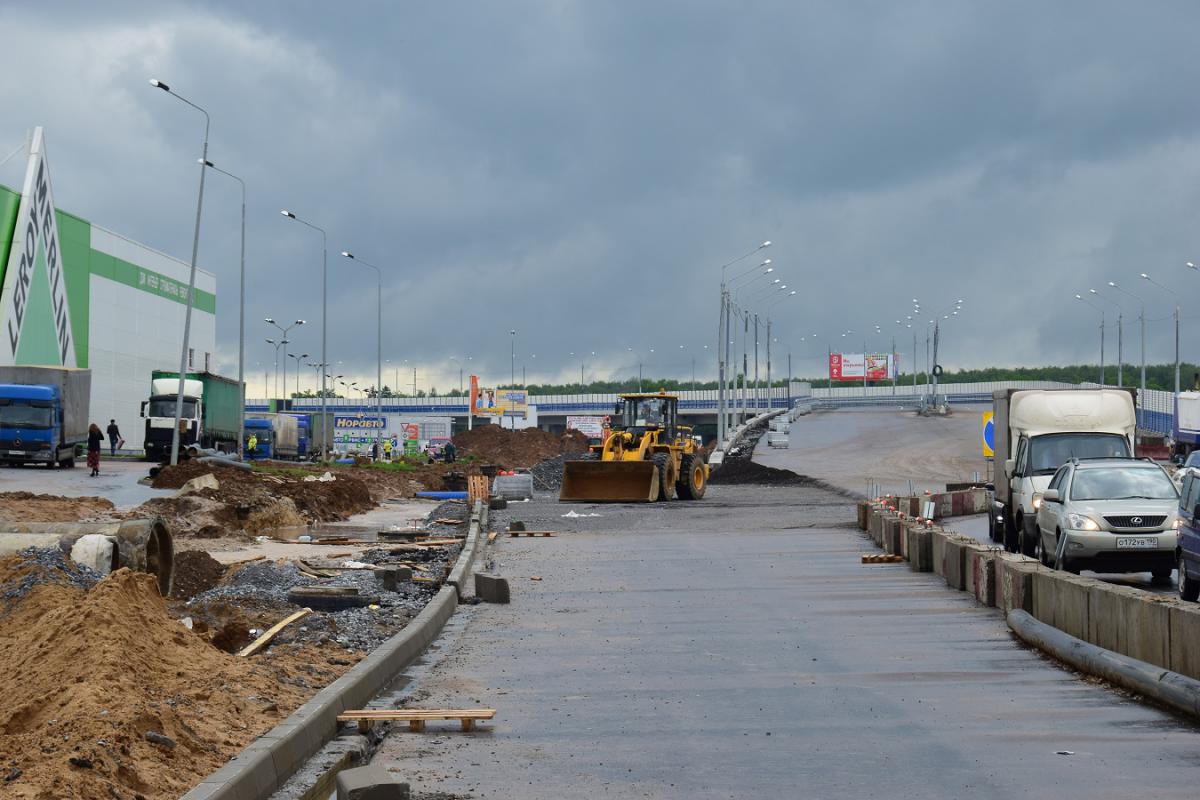 Мои шансы на халявный коньяк от барышни из Весеннего несколько повысились... Начну с поворота. Временно открыли левый поворот на Каледино,пока ваяют правую сторону ЮО. Одновременно обозначили выезд- заезд дополнительный из Мерлена и Климовска.