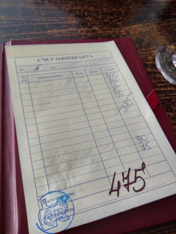 Сейчас друг прислал по ватсапу чек из крымского ресторана на пляже (Щелкино).